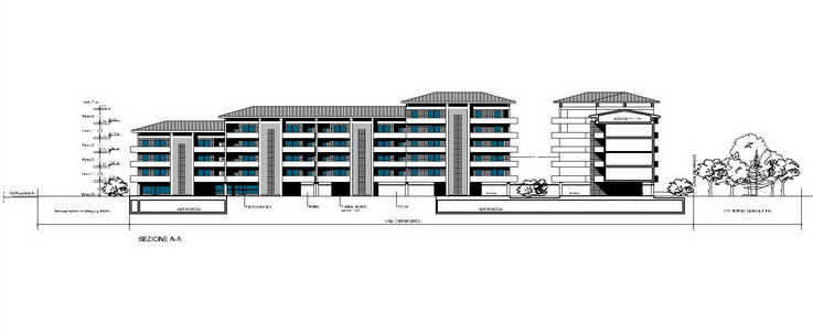 Collaborazione con lo Studio Arch. G. Perotta. Via Pozzobonelli, 6 - L'area ha una Superficie Territoriale di 24.800 mq. ed è ubicata in un contesto periferico della città caratterizzato dalla presenza storica di attività produttive e fa parte del vasto comparto urbano posto a nord della città, rimasta separata con l'avvento della ferrovia che interruppe il percorso storico porta Garibaldi. Il Programma Integrato di Intervento è finalizzato alla trasformazione del Centro di Ricerca ex Enel in insediamento residenziale e parco urbano. Il progetto planovolumetrico del P.I.I.è così definito nelle sue componenti tipologiche, funzionali e morfologiche : La bassa densità territoriale del PII consente di contenere l'altezza degli edifici da un minimo di 3 piani a un massimo in un massimo di 5 piani fuori terra, oltre il piano porticato, secondo una progressione di altezza degli edifici dalla via Pozzobonelli ( 3 piani + portico ) alla estremità opposta del lotto ( 5 piani + portico ). La disposizione dei box al piano interrato, previsti ad un solo livello e disposti perimetralmente lungo i confini del lotto, per circa 1.650 mq. con circa 158 box e 120 cantine. Verranno realizzati 104 appartamenti, in prevalenza di due / tre locali. Le aree a verde pubblico rappresentano il 50 % della Superficie di proprietà.